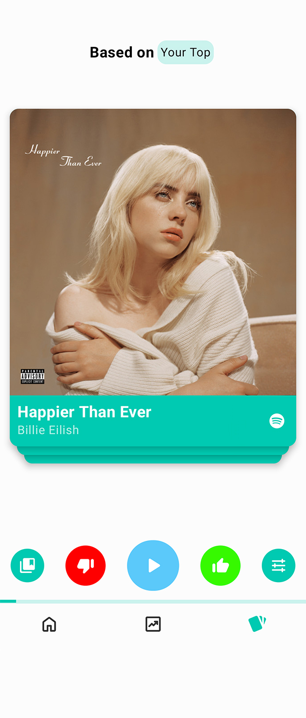 You can swipe Song Recommendations and save them to playlists